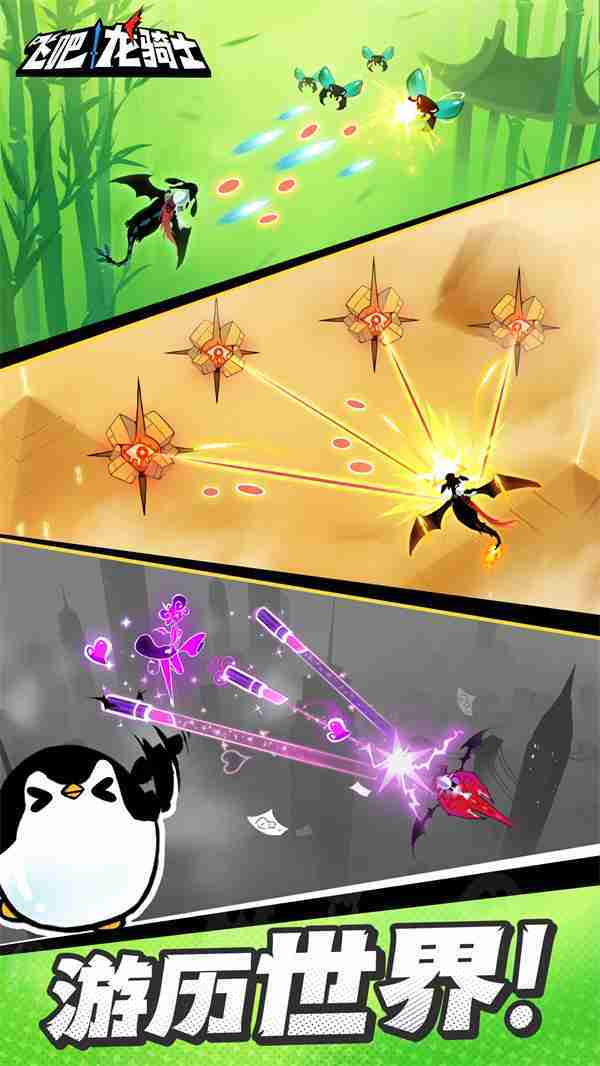 《飞吧龙骑士》是一款集合了飞行弹幕射击、、、Roguelike要素和挂机养成的休闲手游,,,,极具创意的吞食子弹反击玩法,,,突破传统飞行射击的刻板限制,,带来了独特的爽快清屏体验。。。。