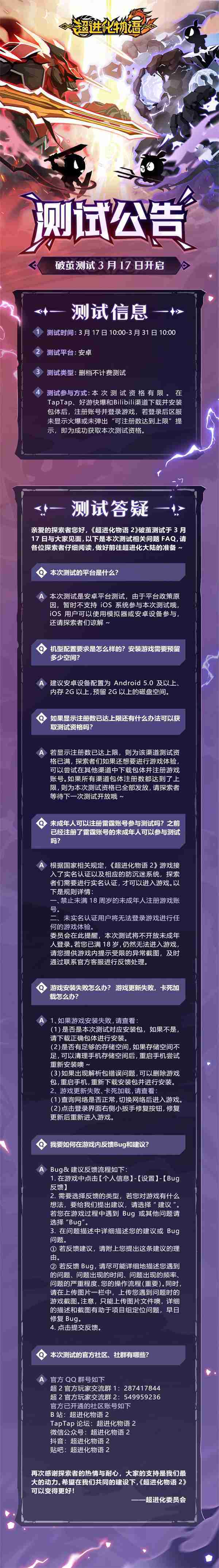 《超进化物语2》首次限号不计费删档测试——「破茧测试」将于3月17日开启,,,,随我们确认测试细节,,,,明天迈出踏上超进化大陆的第一步吧!!!!